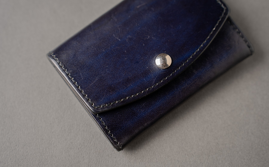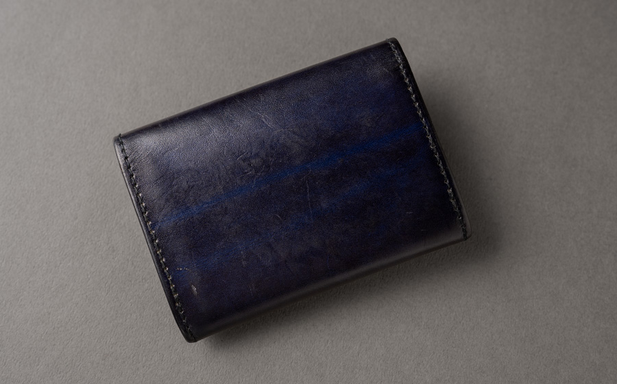 A. 兎に角、革の表情と変化。長財布も使っているので、自分の財布と人が使うこの名刺入れの変化の仕方の違いも愉しんでいます。名刺入れでも在庫の中で一番表情の激しいものを出してもらい、それにしました。その方がきっと愉しめると思います。