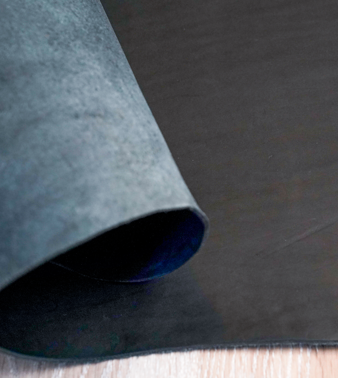 バケッタ製法とはゆっくりと時間をかけて植物タンニンだけで革を鞣す手法。そしてセーゴとは動物性と植物性の油脂を混ぜたオイルのことで、その比率を変えただけでも仕上がりに差が出てくる。この2つの手法を用いて生み出されたのがこのペコスロウという革だ。使用している植物タンニンは収斂性の強い、ケブラチョやチェスナット、ミモザ、さらにバロニアなどを混ぜたものを使用するため、単に鞣されただけであれば比較的硬い革になるはずだが、バケッタ製法とセーゴ、また再鞣しを行うことによって柔らかく柔軟性のある革に仕上がっている。実はこのペコスロウは色々な加工が可能で、グレージング(磨き)の加工を加えると艶が出て、染料を入れると吸い込みが良く染まるのでクラフター(革製品の中でも1点ものを得意とする個人作家)にも人気の革だ。そう、「ロウ」というのは「RAW」の意味で、原点であることを示しているのだ。