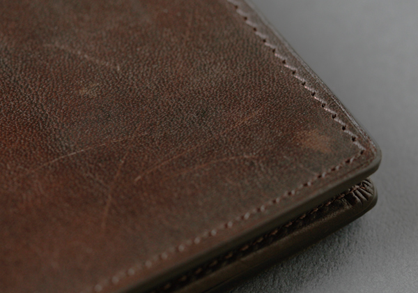 A. 革の質感です。ナチュラルな革は艶が上がったり、色が変化したりするのが解りやすくていいところなんですが、このシェイドワックスレザーは艶も上がるし、色も濃くなるんだけれど、一般的な革とちょっと違う気がするんですよね。うまく表現できないんですけど、しっかり変化してるのにその割に綺麗というか。艶々になり過ぎない、変化しすぎない、そんな印象を受けるんです。ただ、使用前と見比べると、確実に変化してるので不思議なんですけどね。
