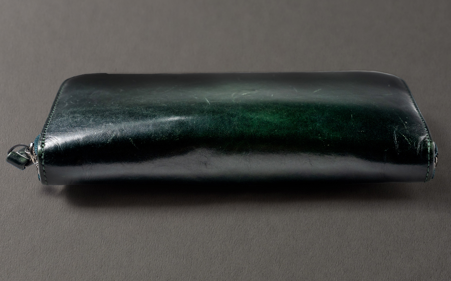 A. 常に鞄の中に入れて使ってます。メンテナンスはたまに、クリームを塗るくらいんですけど、本当に稀です。中身は本当にいっぱい入れてます。ポイントカードとかレシートとか、最初はすっきりさせて使っていたのですが、気がついた時にはパンパンになってました笑。