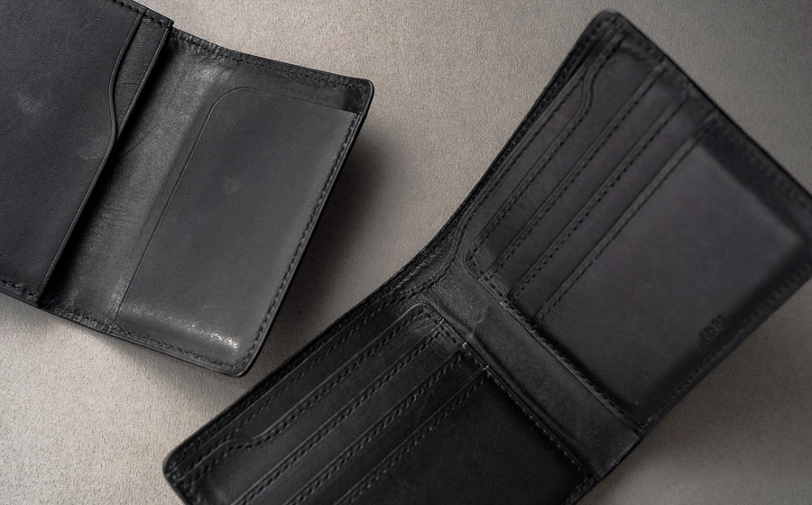 A.ビジネスのオンオフ関係なく、小さめのショルダーバッグに入れて使ってました。コンパクトなので嵩張らなくて良いですよね。使い方としてはちょっと特殊かもしれませんが、この純札入れには一番重要なカード類や高額な紙幣を中心に入れていて、たまに円をアオリポケットに入れて、現地通貨を通常の札入れに入れて2通貨を同時収納したりしていました。紙幣は枚数が多かったので、別でマネークリップも持ち歩いて、そっちにザッと入れてました。常に身につけて離さない財布と落としてもダメージの少ないマネークリップに分けることで安心感もありました。メンテナンスは年1度くらい、モレスキンの靴用のクリーナーとオイルを使ってます。