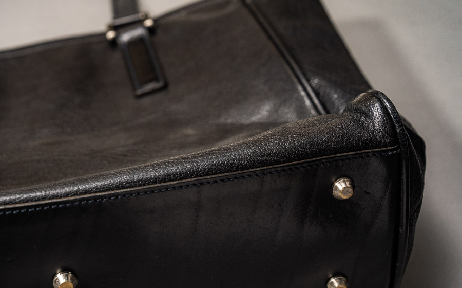 A.毎日、月曜から金曜の間、仕事で持ち歩いてます。営業職なので中身は結構しっかり入れていて、自分的には入れすぎてるかな、と思っているくらい。雨の日にも持ち歩きますが、一応、肩にかけて雨がかからないように気をつけていて、メンテナンスは本当にたまに鞄の角にレザークリームを塗る程度。頻度は、、、本当にたまになので笑。そう!使い方で気をつけているのは一応、ゆっくりと床に置くようにしてます。地面で革が削れるような、引きずるような横スライドな置き方はしてないという意味で。上から下に置く、って感じです。