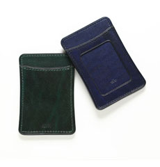 ルガトショルダーを一言で言うと「奥行のある革」。銀面(革の表面)に施された光沢が透明感と艶感を演出し、ショルダー(牛革の肩の革)が持つトラ模様(関節のシワ)などの革本来の表情を立体的に浮かび上がらせる。他の革では味わえないこの透明感から得られる奥行がルガトショルダーに言い知れぬ高級感と革本来のワイルドさの両方の印象を与えている。また、特徴の一つに独特な発色がある。革のトラ模様によって色の濃淡が生まれ、これも革に奥行を持たせる一端となっている。ここまで特徴的な発色をする革はルガトショルダー以外になく、ひと目見ただけでルガトショルダーだとわかってしまう。パンッと張った銀面はかっちりとした印象も与えるため、ビジネスシーンにもマッチ。光の角度によって変化するその表情は四六時中一緒にいる持ち主を飽きさせることがない。