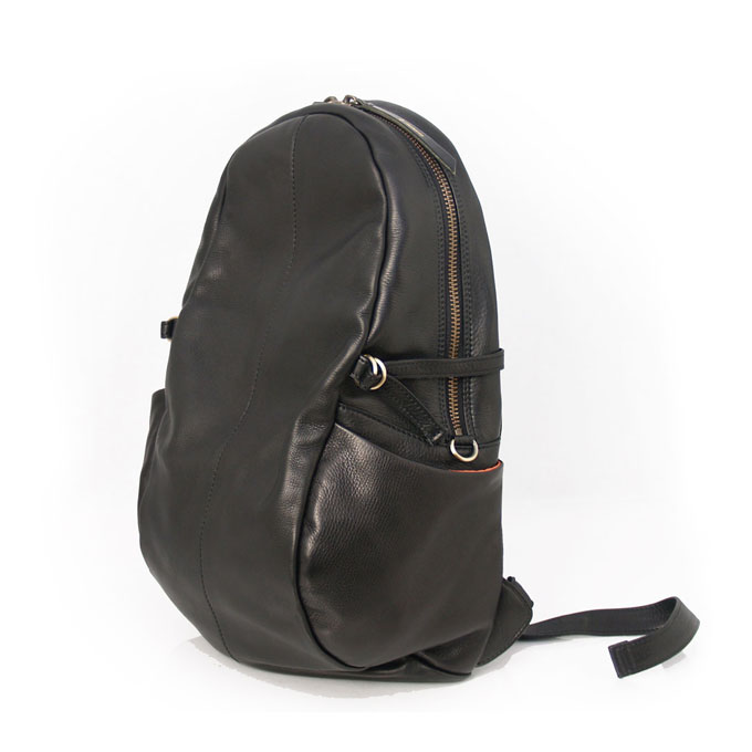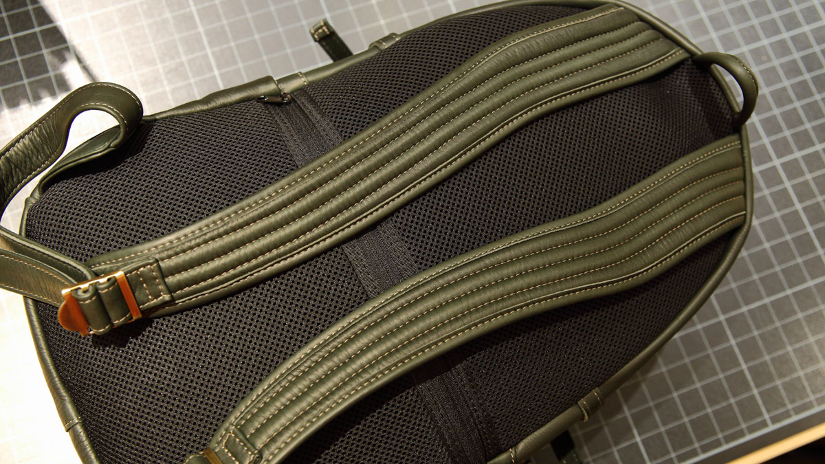 ― まず、初めにこの形。革のリュックというと少し角ばったものが多いのですがこのリュックは流線形ですよね。その秘密を教えてください。