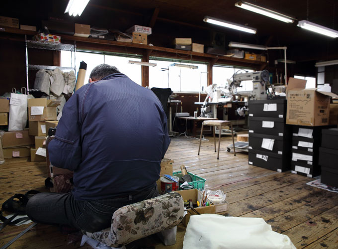 猪瀬:この革でこのリュックを縫う時は縫う職人じゃないとわからないことが多い。それに漉きも一律じゃなくて革の状態に応じて変えていくから、もはや縫製する職人の長年の勘に頼るしかないんだ。漉き加減も含めて製品の雰囲気になっていくからね。