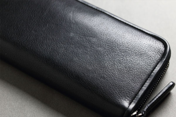 A. 使い方は鞄の中に放り込んで使っています。鞄の中には常に本や鍵が入ってるので、財布が傷だらけになってしまうのかと思ってましたが、革が柔らかい分、あまり傷が入っていない気がします。メンテナンスは何もしていません。1年半立ってますけど、ジワジワ艶が上がってきた気がします。あと店舗の人に教えてもらったように、角には重点的に自分の脂を塗ってます。