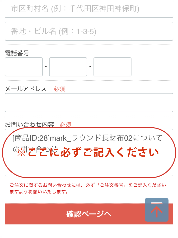 「商品についてのお問い合わせ」をクリック