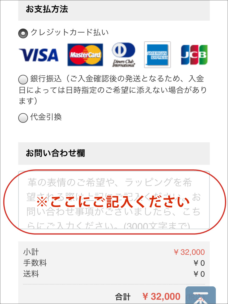 お問い合わせ欄に必ず「写真希望」とご記入ください