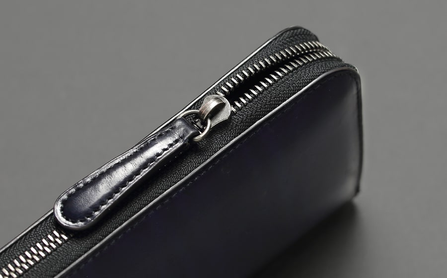 A. まずファスナーの開閉が非常にスムーズなこと。使い始めよりも今の方が一層、滑りがよくなってます。なんというか、ただ滑りがいいというわけではなく、「しっかり閉まっている」と感じさせられるんです。これは実際に使わないとわからないかもしれません。あと、中に使われている素材も柔らかく、カードも入れやすい。小銭入れもガバッと開くので見やすいですし、本当にいい買い物をしたと思っています。