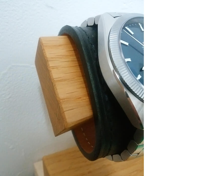 A. 冒頭でも書きましたが、価格の割にバックルの形・革の色・質感全てが期待以上でした。特に色については、単純な黒ではなく、ちょっと外した感じの色:藍鉄が他所では見られない色で、特に気に入っています。あと、サイズカットしたベルトの余り革を時計の保護剤に使用しています。ぴったりなんですよね。