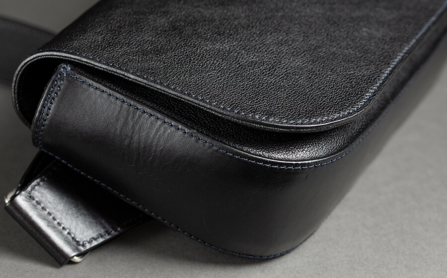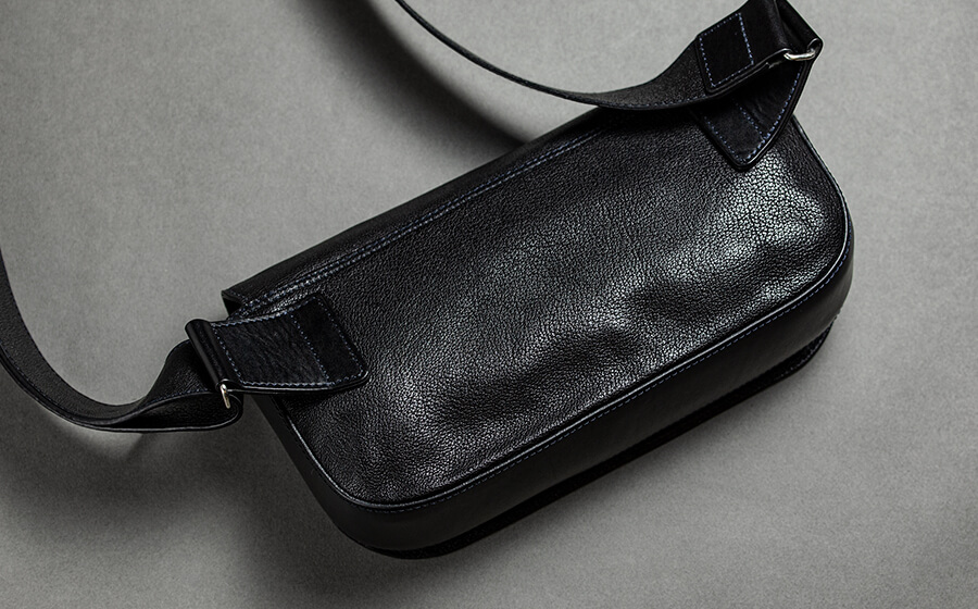 A. ちょっとした外出時に、少しカジュアルな装いの時はこのショルダーバッグを使っています。主人も仕事のない時にポロシャツやTシャツなどで合わせて身に着けてましたね。私は前掛けで使ってましたが、ファスナーとマグネットの蓋がついているので後ろ掛けにした時にも安心でした。メンテナンスは全て主人に任せてますが、やっているところをあまり見たことがありません。