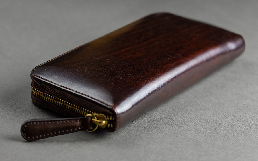 A. それまでは安い2つ折り財布を使っていましたが、高い財布の方がお金も貯まるのでは(笑)と思い、年相応の長財布をWebサイトで探しました。ロゴが入ったブランド物や凝った外観の物は好きではないので、Alt81様の財布を見た時は、「これ!これ!」と思い購入しました。家に届き実物を見た時は予想以上の上質感と存在感にしばらく見惚れていました。