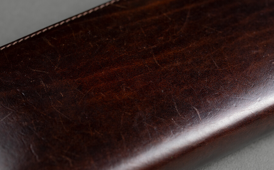 A. 仕事の時もプライベートの時も鞄に入れています。割りと無造作に入れちゃってます。メンテナンスは半年に一度ぐらいでクリームを塗っています。クリームを塗ると艶が出て甦りますね。