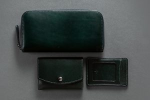 mark_ラウンド長財布02(2年使用)/名刺入れ02、パスケース02(1年5カ月使用)※全てグリーン