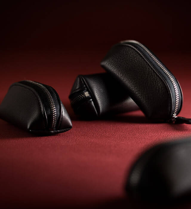 車の鍵や時計・カフスなどの小物類を入れておくこと想定していたが、マチがあるため、中に収納するものによるアタリも出にくく、形が崩れにくい。また、内容物をたっぷりと入れない時にも形が崩れることがないよう、芯材も入れており、長年愛用いただける形に仕上がっている。