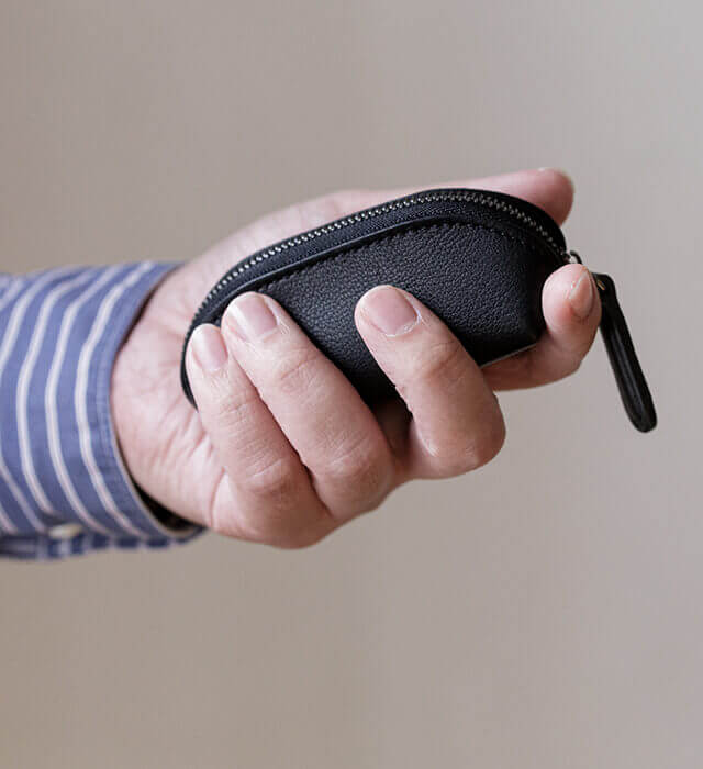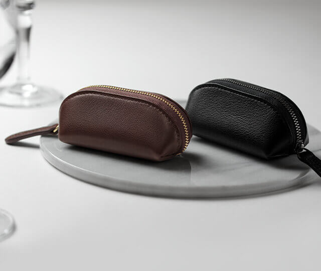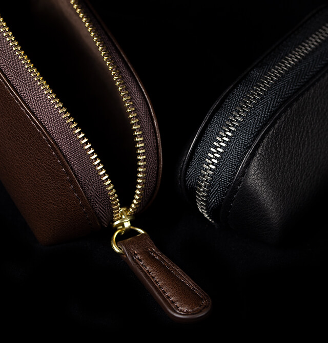 page_ペンケース01は1色だったが、この小物入れは2色展開。王道のブラックで経年変化を愉しむのもいいが、ダークブラウンがブラック以上にエレガントな雰囲気を醸し出しているため、こちらも注目だ。もし鞄に入れて持ち運ぶことを考えた場合、汚れの目立たないブラックか、明るめの色で鞄の中でも見つけやすいダークブラウンか、少し悩んでしまうかもしれない。