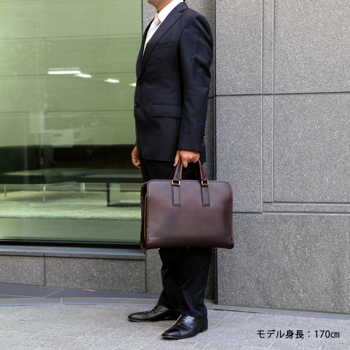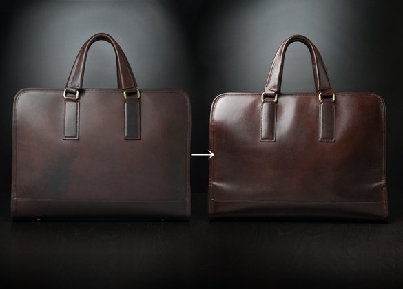 スタンダードでもしっかりとした個性を持ったブリーフケースが欲しい。矛盾しているけれど、誰もが願うこの想いに応えるために世界中から革を探したが見つからない。そこで日本の職人と共に1から作り上げたのがこのシェイドワックスレザーだ。職人が手塗りでワックスをかけることによって生まれる濃淡は、継ぎ目なしの両版がその迫力をはっきりと表現している。そして、使い込むことで増す艶はこのブリーフケースを個性のある鞄へと進化させるだろう。