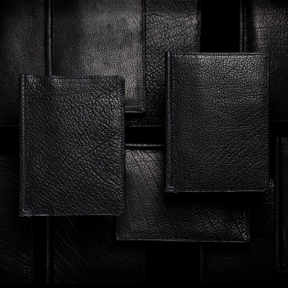 P&Dバッファローカーフは柔らかくコシもあり、凹凸の激しい稀有な革だ。平な革と比べて通常の工程でも難易度に大きな差がでる。製品の縁の処理であるヘリ返しをピシッと見せるためのネン引き、角の処理を綺麗に見せるために幾重にも革を重ねた菊寄せなど職人泣かせな仕様となっている。