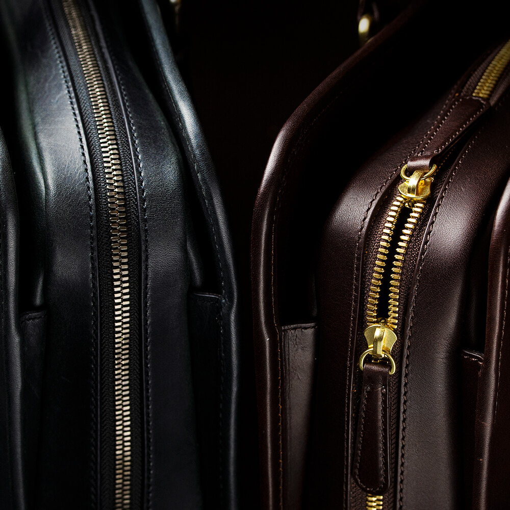 使用頻度の高いファスナーには壊れ難い頑丈さとスムーズな使用感を求めたい。そこで噛み合うひとつひとつの金具「務歯(むし)」の両面を削るひと手間が入ったエクセラファスナーを使用し、通常よりも圧倒的によい滑りを実現させ、開閉のストレスを無くした。また、がっちりと密度の高い噛み合った務歯が重厚感と高級感を醸し出し、見た目にも美しい。スムーズに動くファスナーは負荷がかかりづらく、また壊れ難さにも繋がっている。