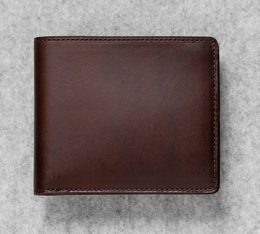 この純札入れに使用している素材はビートルと呼ばれる硬質な革。オイルがしっかりと含まれており、触るとツルッとした質感がある。色は赤味の強いダークブラウンと、Alt81のブランドカラーでもある藍鉄の2色。ダークブラウンはその色名と少し違った印象を持つかもしれないが、濃淡もあり色気が漂う。藍鉄は黒よりも青く、少し緑味のある色でシックな印象を受ける。真逆な2色に悩みは尽きない。