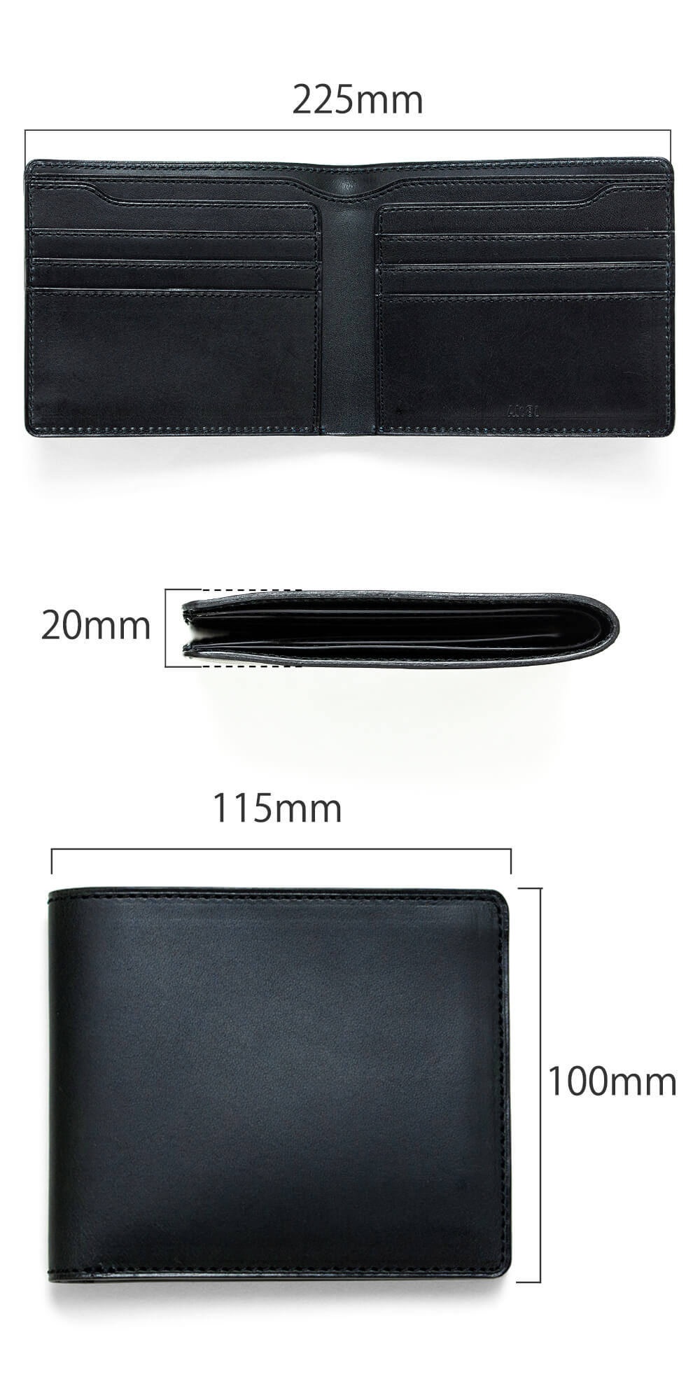 この純札入れは左右対称にできていて、小銭入れのように財布自体を膨らませる要素を持っていない。それゆえに形が崩れにくく、何より財布自体を薄く持てる。全てのカード段にカードを挿し、紙幣を10枚程入れても厚みは28mm前後にしかならず、スーツの内ポケットに入れていて違和感がない。手に持っていてもはっきりと意識できる潔いスリムな形は昔から愛好家が絶えない形であることも頷ける。