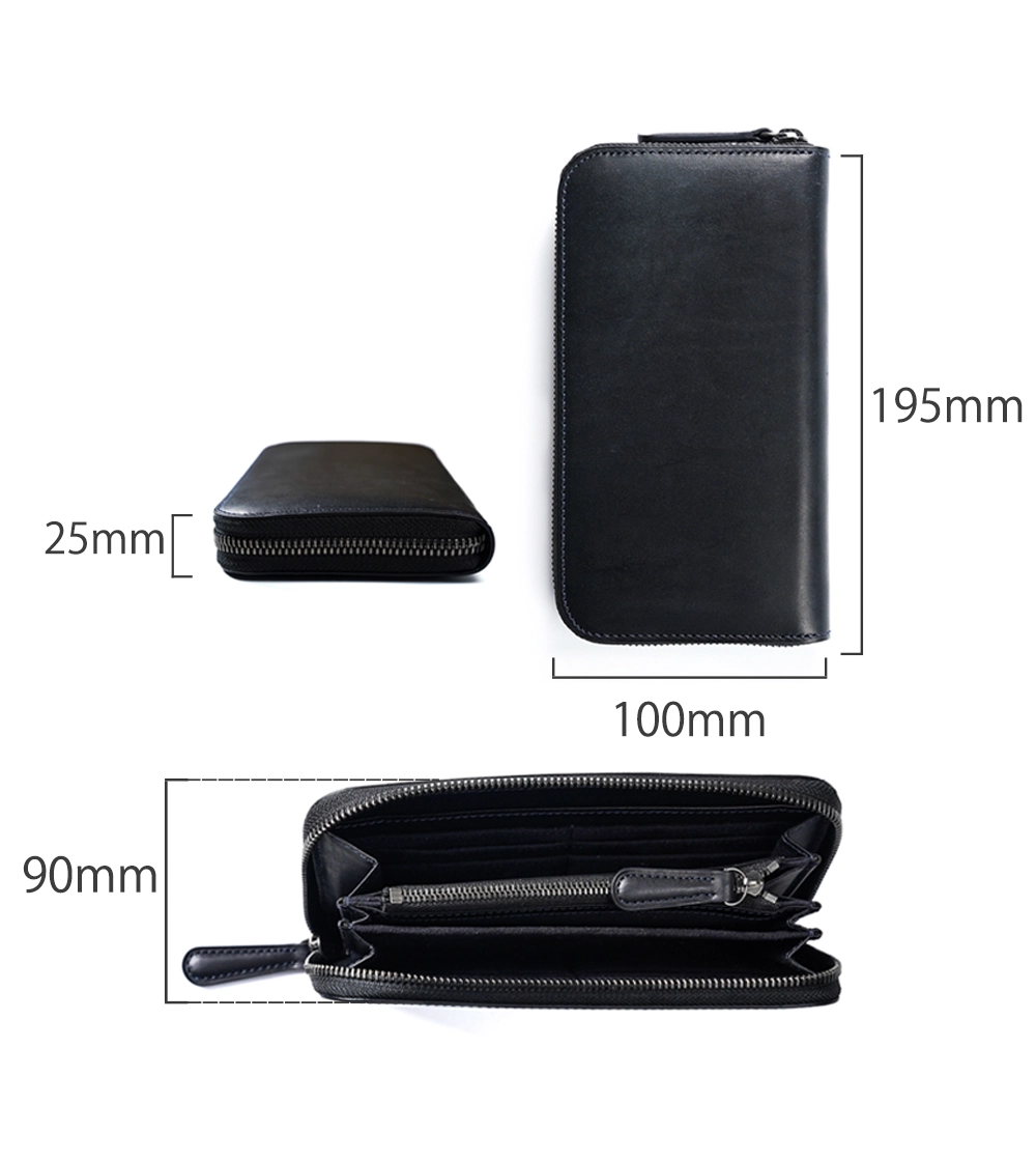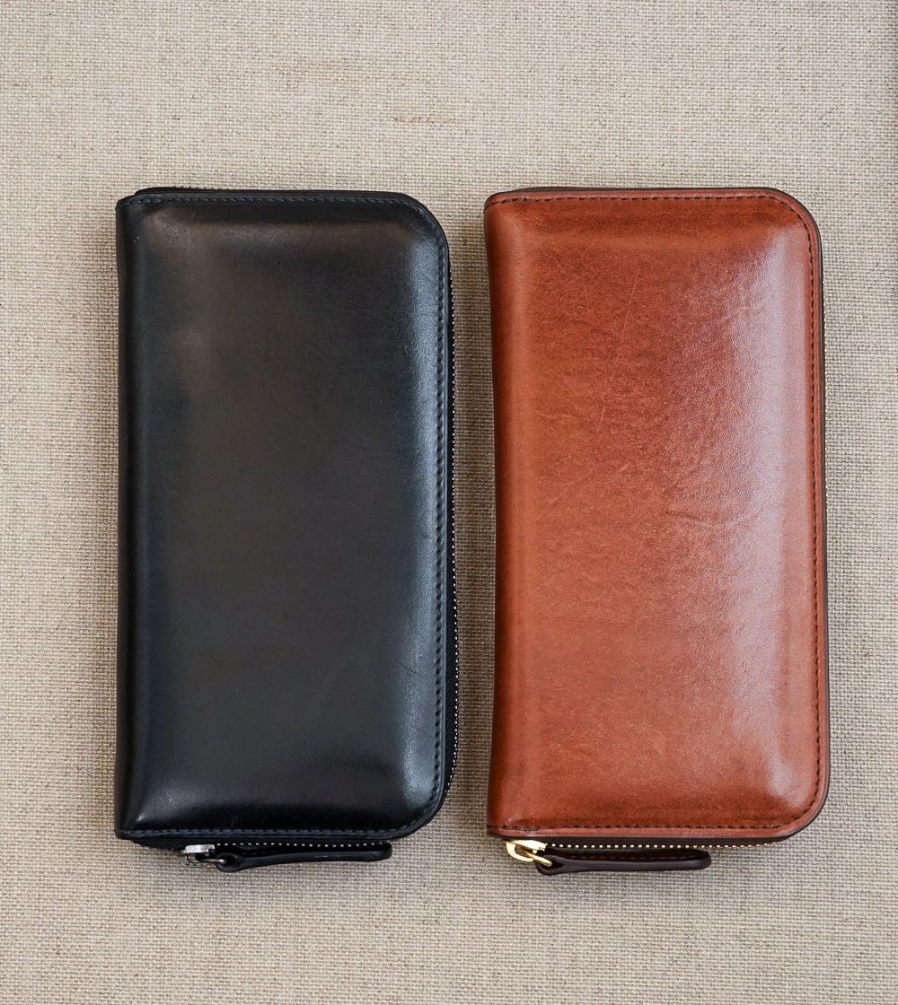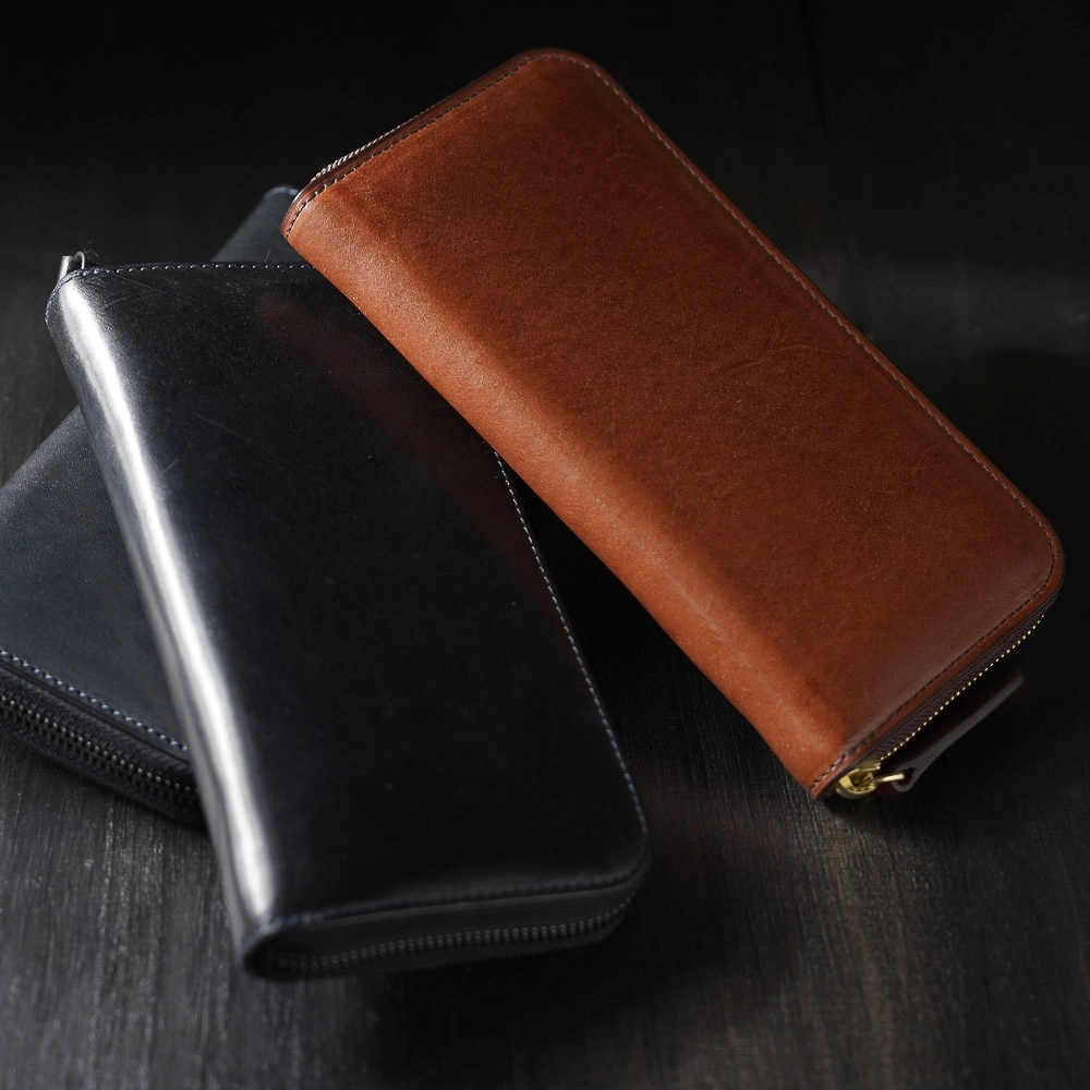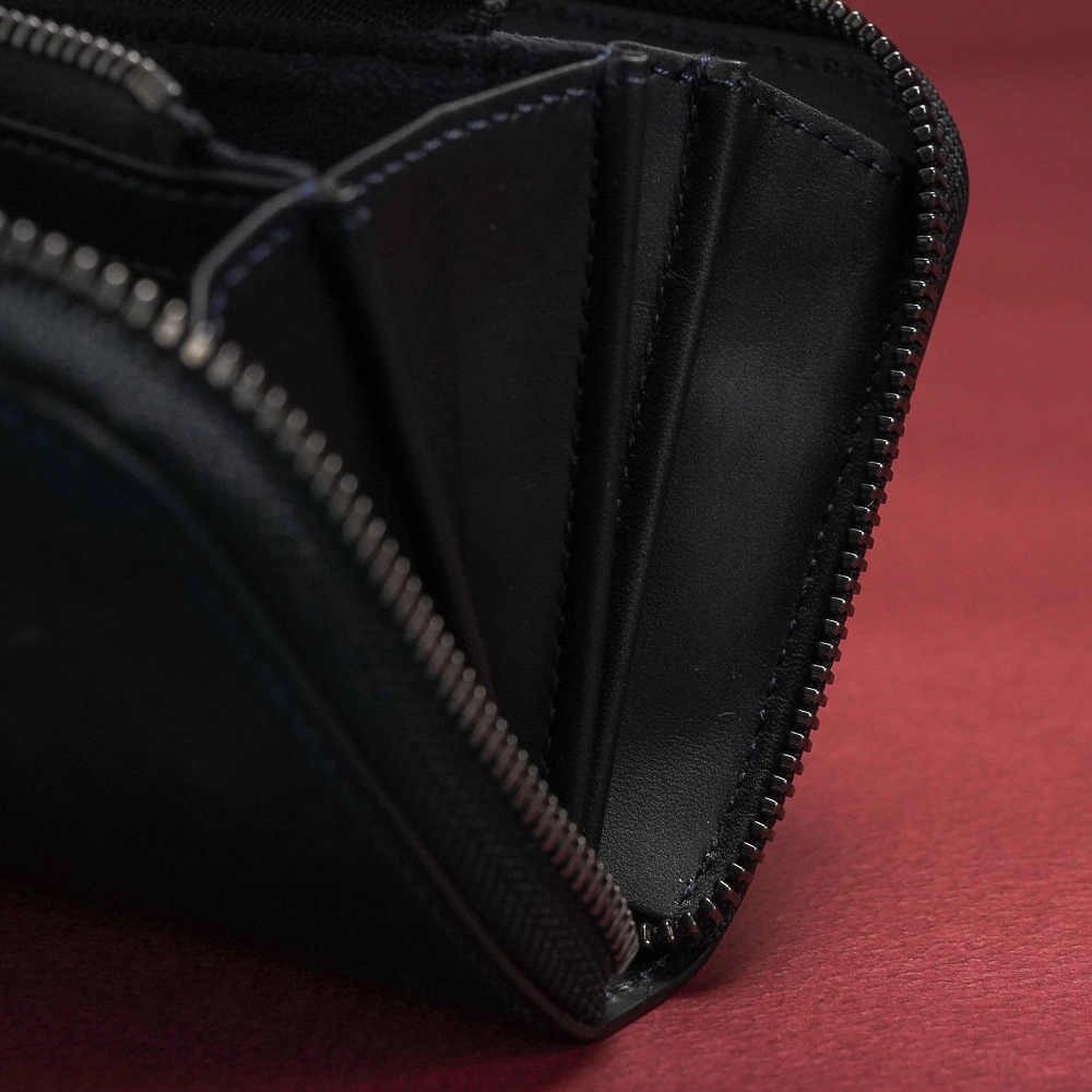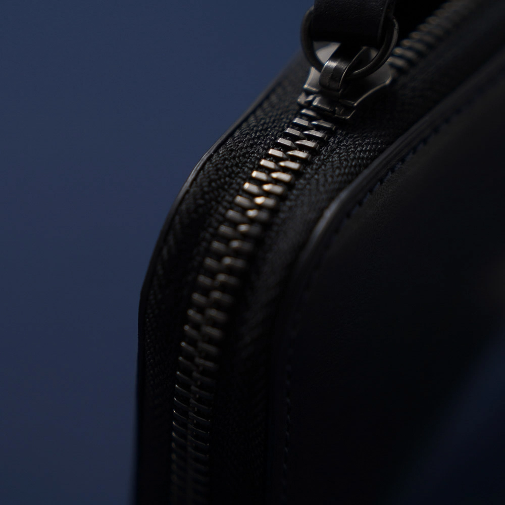 毎日使う財布のファスナーだからこそスムーズな使い心地が必要。このラウンド長財布に採用されているYKK社の「エクセラファスナー」は噛み合うひとつひとつの金具「務歯(むし)」を磨き削るひと手間を加えている。また、5番と呼ばれるしっかりとした太めのファスナーを採用していることも挙げておきたい。壊れにくさを少しでも上げる、熟考の上の選択だ。