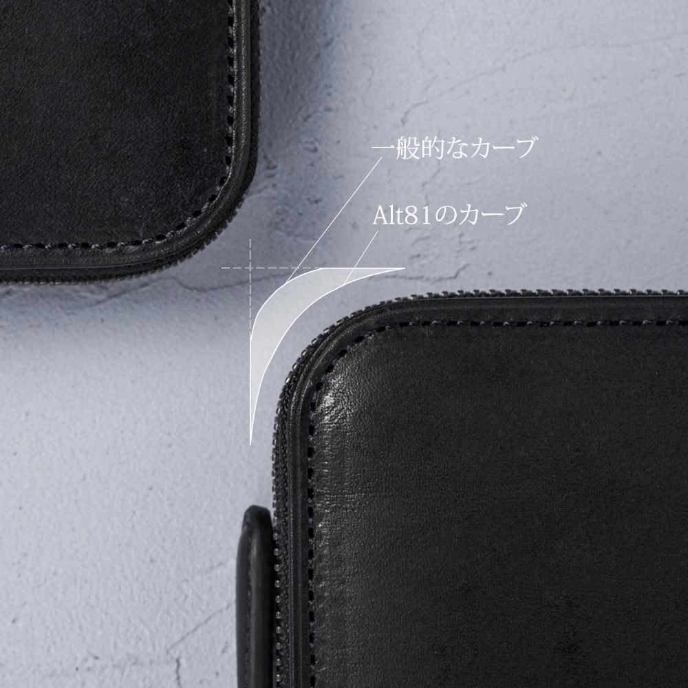 デザインと機能を融合させることはデザイナーの本懐だ。Alt81のラウンド長財布の角の曲線部分は非常に滑らかなカーブが描かれているのだが、実はこれは壊れやすい原因から逆算した設計。ファスナーの引手を引っ張る力、これをカーブを緩くすることによって逃している。この角に様々な負荷がかかることを考慮し、少しでも壊れにくく、そして見た目の美しさも取り入れたデザインとなっている。