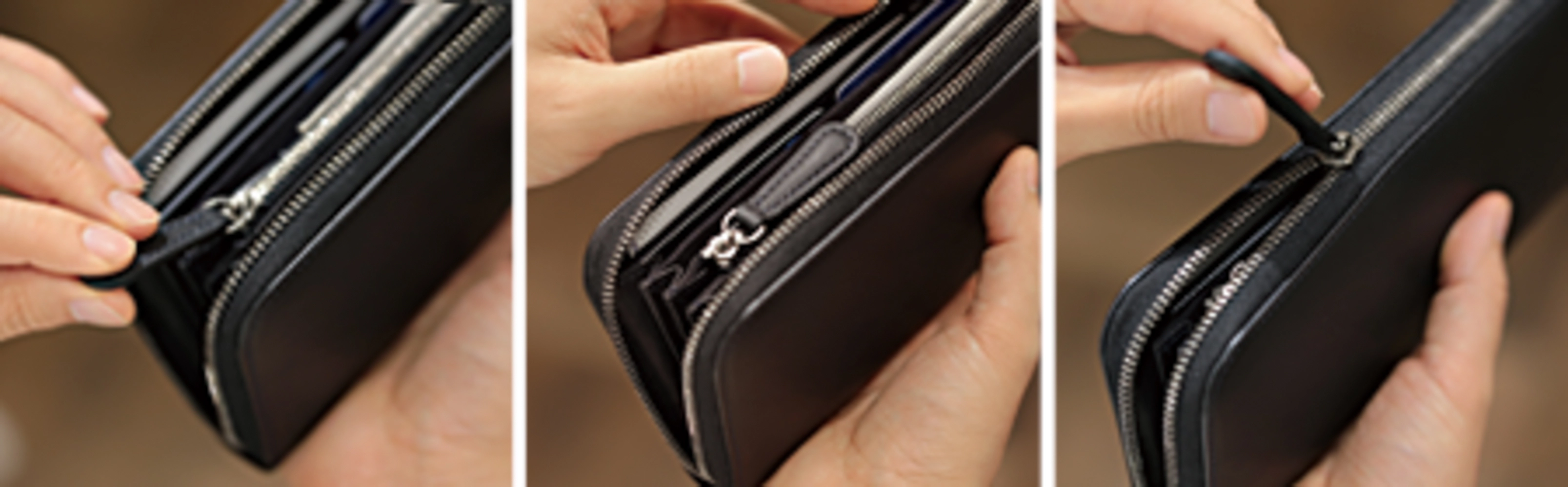 ■小銭入れの引き手を閉める際は内側に仕舞うクセを。