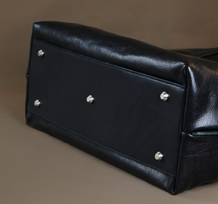 この鞄は袋縫い(鞄を内側から縫い、最終的にひっくり返す縫い方)で作られているのだが、これほどのサイズの鞄を廻しながらミシンを掛けるのは非常に難しく、職人の手練なしには不可能な作業。またひっくり返す際にもこの独特のコシを台無しにしてしまわないように、細心の注意を払い丁寧に返さなければならない。この大きさゆえに慎重さが求められる大事な作業だ。