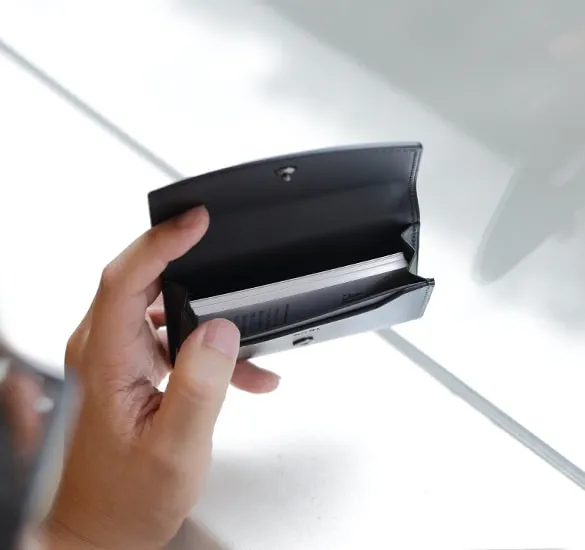 ビジネスでは一瞬の出来事が人の印象を決める。そしてその一瞬が与えた印象は長い間、相手の脳裏に焼き付いている。身だしなみや足元を見られていることはよく言われているが、名刺入れも例外ではない。人の持っていない、それでいて嫌味にならない名刺入れには仕事をうまく運ぶ理由がある。名刺を多く交換してきた人が相手なら、その視線を奪い、持ち主に対して興味を抱かずにはいられない。