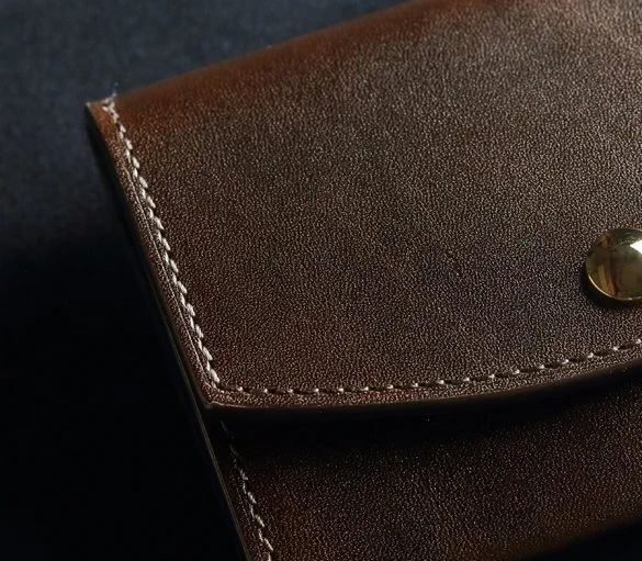 外装をグルッと囲むように熱したコテを使って引く「ネン」が縁全体に施されている。ステッチと縁の僅かな間を走るその線は名刺入れ全体を引き締める効果がある。