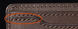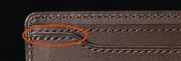 赤い丸の箇所:二重にステッチが掛かっている