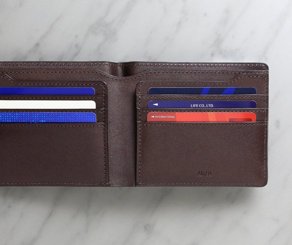 この純札入れは二つ折り財布よりも少し横長に、ゆとりを持たせて設計している。そのため、縦長のポケットなどに入れた時に出し入れがしやすい。小銭入れが付いていないことで財布の形が崩れることもなく、非常にスマートな印象をもたらしてくれるだろう。