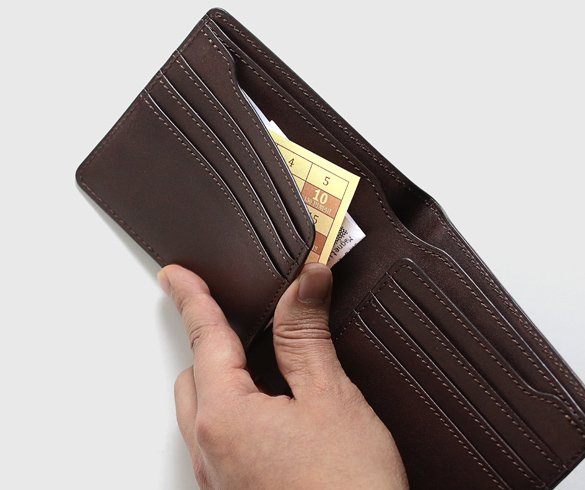 二つ折り財布は機能的で使いやすいが小銭入れがある分厚みが増すのに対し、純札入れは小銭入れがないため薄い。何も入れていない状態での厚みの違いも大きいが、使い出すとその差はより大きくなる。実は二つ折り財布と純札入れは使う人が面白いほどきっぱりと、まるで派閥のように分かれている。小銭入れがあるのか、ないのか。その違いは持つ人にとって果てしなく大きい。