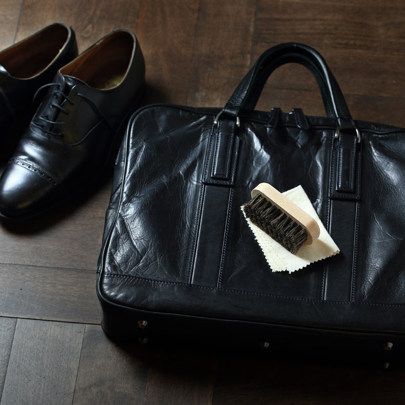 革小物、革財布などには「ブラシは持っていた方が心強い」と言えるのだが、革鞄と革靴だけは別だ。これらのアイテムにとって、メンテナンスブラシは「必須」。理由はいたってシンプル、汚れやすいからだ。革靴が汚れやすいのは誰でも想像できるが、実は鞄も外出時に地面に置いたり、外の汚れを直接受け止めてしまい、汚れやすい。革鞄と革靴を持っている人は是非、専用のブラシを持っていてほしい。