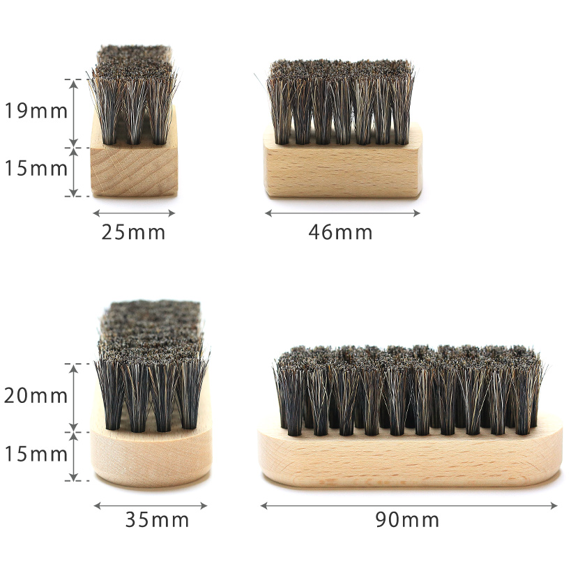 Alt81ではコンパクトで使い勝手の良いSサイズと、鞄や靴を全面的に仕上げるためのMサイズを取り扱っている。革小物や財布などはSサイズで十分だが、鞄や靴となるとSサイズではメンテナンスに時間がかかってしまう。そんな時はMサイズのブラシを使おう。また、ブラシは用途別で準備していることが多い。例えば靴の汚れ落としのブラシをそのまま革小物のメンテナンスに使うことはあまりしない。メンテナンスの度にブラシをしっかりと洗って乾かしていれば兼用もいいと思うが、その労力を考えると用途別で用意していた方がいいだろう。