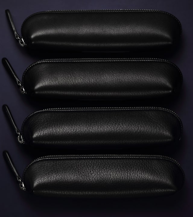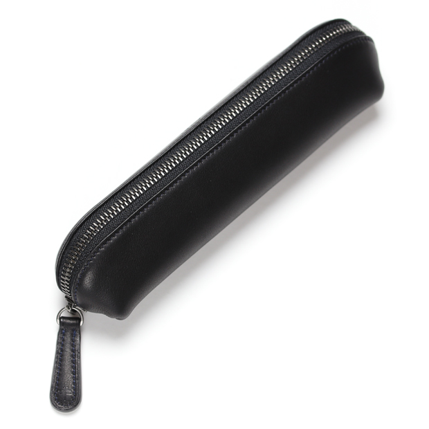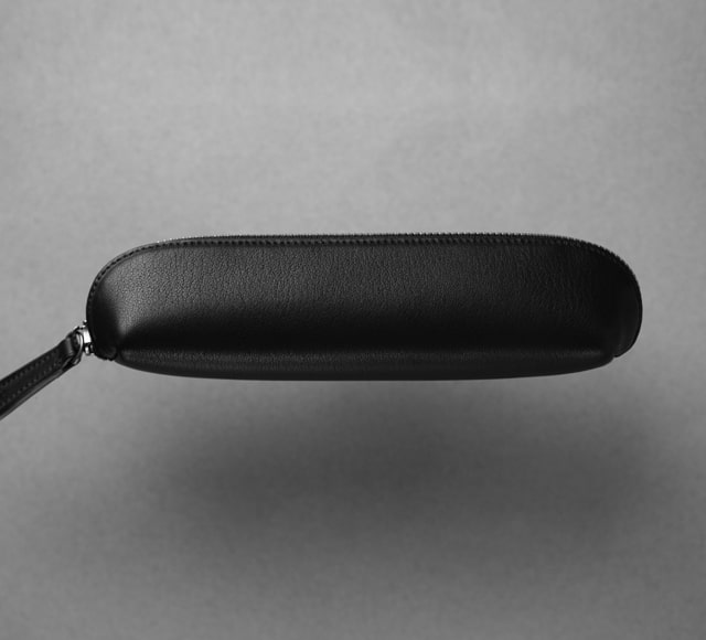 同じ革で作られたラウンド長財布がAlt81には存在するが「ずっと触り続けたくなる革」とお客様から言われることが実に多い。それほどの革をペンケースに使うとどうなるか。答えはシンプルで、手放せなくなる。いや、「手が離れない」といった方が正確かもしれない。指先に吸い付くようなサラッとした革の表面に、モチッとした柔らかさが触れ続けたくなる原因なのだが、この質感は実際に手に取らなければわからないかもしれない。
